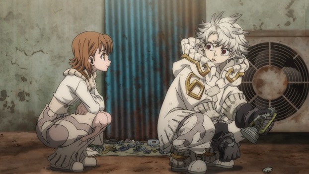 Studio Bones’ mixed-media approach, blending 3D and 2D animation, gives the characters a dynamic, almost tactile quality, making their movements feel raw and visceral.