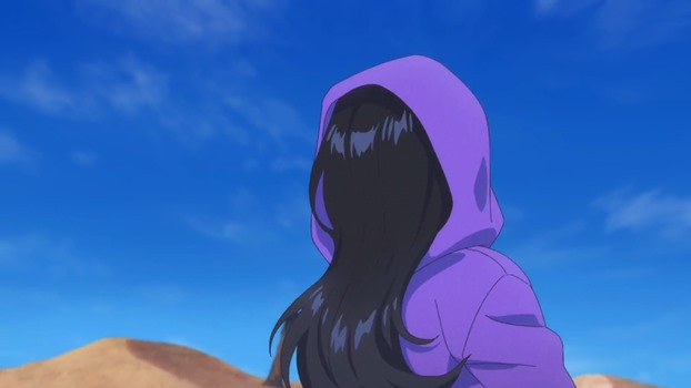 Natsuko Hirose, the prodigious animator reborn into her favorite fictional world, has a sleek, futuristic outfit paired with a classic, flowing hairstyle, symbolizing her bridge between old and new storytelling.